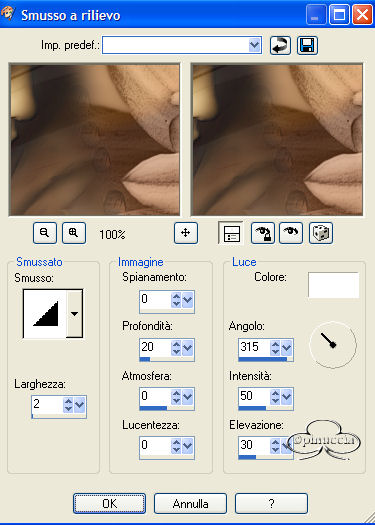 10. Effetti>Effetti 3D>Smusso a rilievo, con i settaggi standard, larghezza 2.