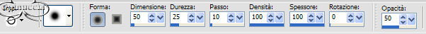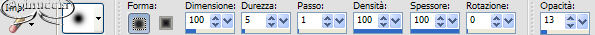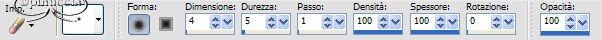 Attiva lo strumento Gomma con i seguenti settaggi: