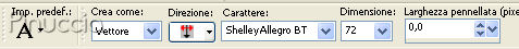 Io ho usato il font "Shelly Allegro BT", dimensione 72, pennellata 0, vettore: