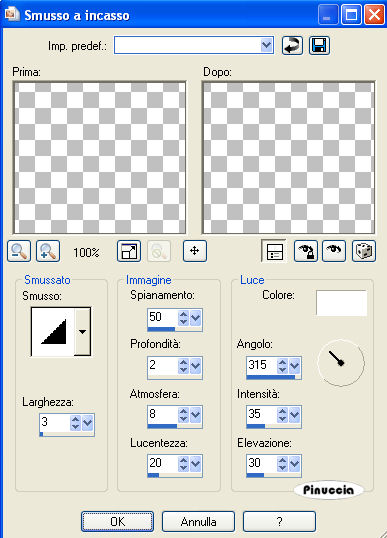 13. Effetti>Effetti 3D>Smusso a incasso, con i seguenti settaggi: