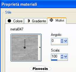 e seleziona la trama "Metal047", angolo 0, scala 100: