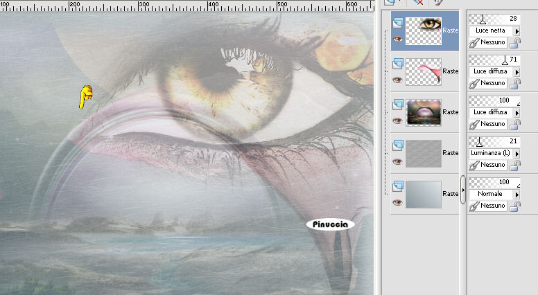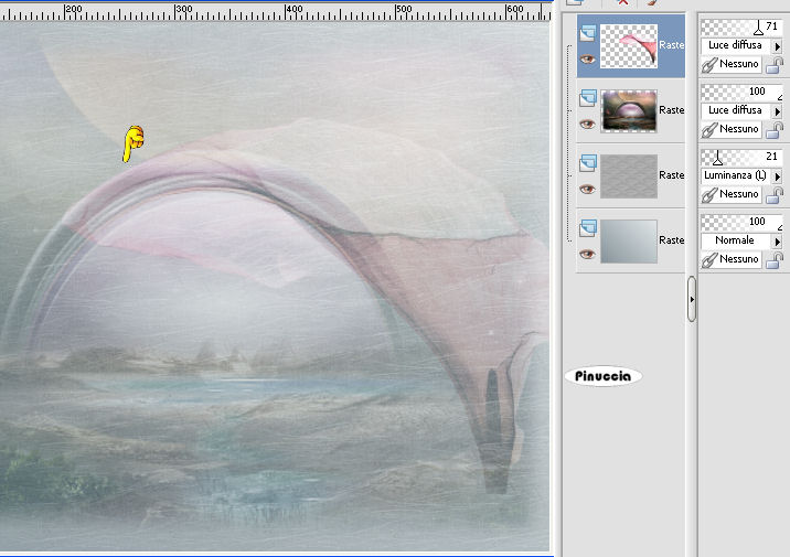 Nella paletta dei livelli cambia la modalità di miscelatura in Luce diffusa.