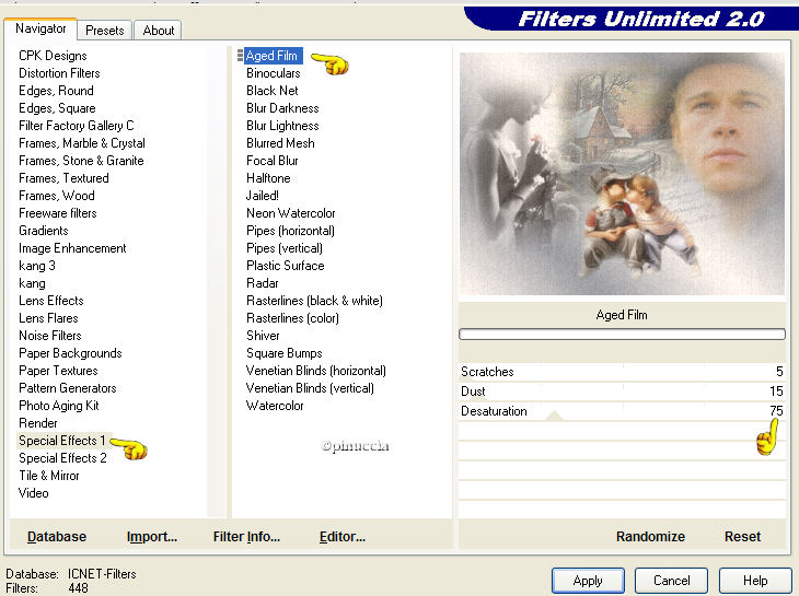 25. Effetti>Plugins>Filters Unlimited 2 - Special Effects 1 - Aged Film, con i seguenti settaggi: