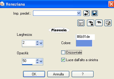 Effetti>Effetti di trama>Veneziana, con i seguenti settaggi, colore #6b91de: