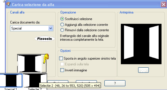 La selezione Special1 è già pronta per essere caricata. Clicca Carica.