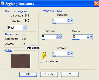 Immagine>Aggiungi bordatura, simmetriche non selezionato, con il colore #5a4440: