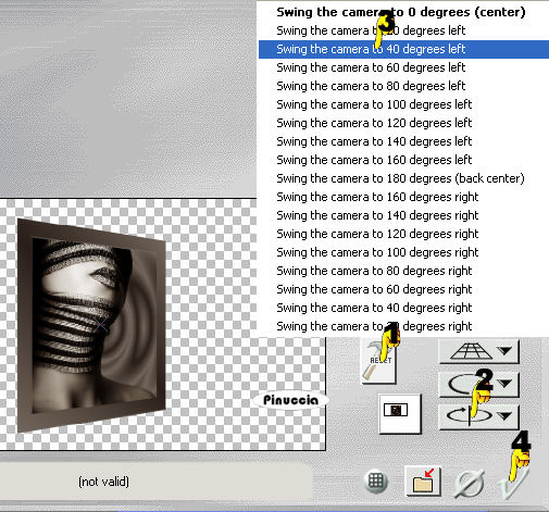 seleziona Swing the camera to 40 degrees left (3) e clicca sul segno di spunta (4) per applicare il filtro.