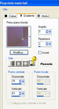 Passa il colore di primo piano a Gradiente di primo piano/sfondo con i seguenti settaggi: