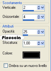 Effetti>Effetti 3D>Sfalsa ombra, con i seguenti settaggi, colore nero.