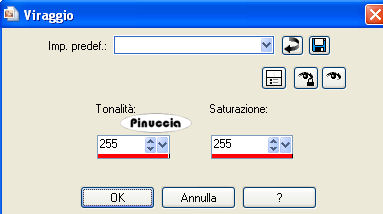 Regola>Tonalità e Saturazione>Viraggio, con i settaggi precedenti.