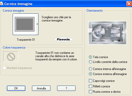 Immagine>Cornice-immagine - seleziona Transparent01, con i seguenti settaggi: