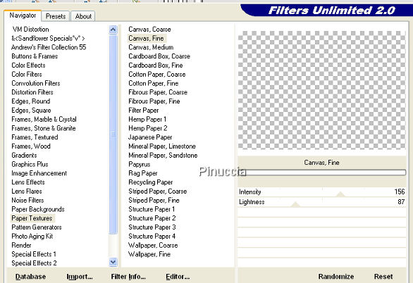 Effetti>Plugins>Filters Unlimited - Paper Textures, Canvas Fine, con i settaggi standard: