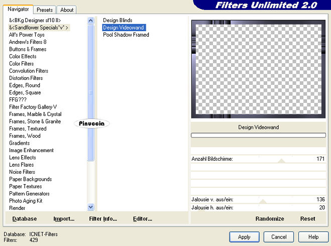Effetti>Plugins>Filters Unlimited - Sandflower Specials: Design Videowand: