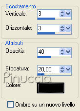 Effetti>Effetti 3D>Sfalsa ombra, cambiando l'opacità a 40.
