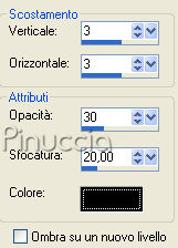 Effetti>Effetti 3D>Sfalsa ombra, cambiando l'opacità a 30.