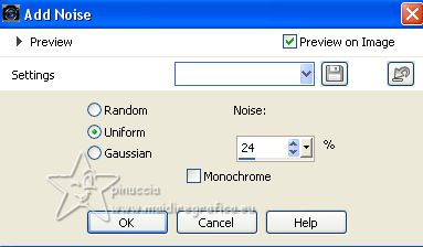 31. Adjust>Add/Remove Noise>Add Noise.
