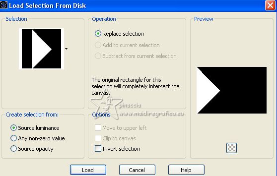 17. Selections>Load/Save Selection>Load Selection from Disk.