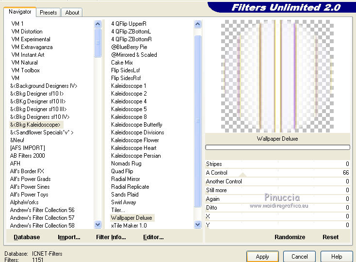 11. Effets>Modules Externes>Filters Unlimited 2.0 - &<Bkg Kaleidoscope> – Wallpaper Deluxe.
