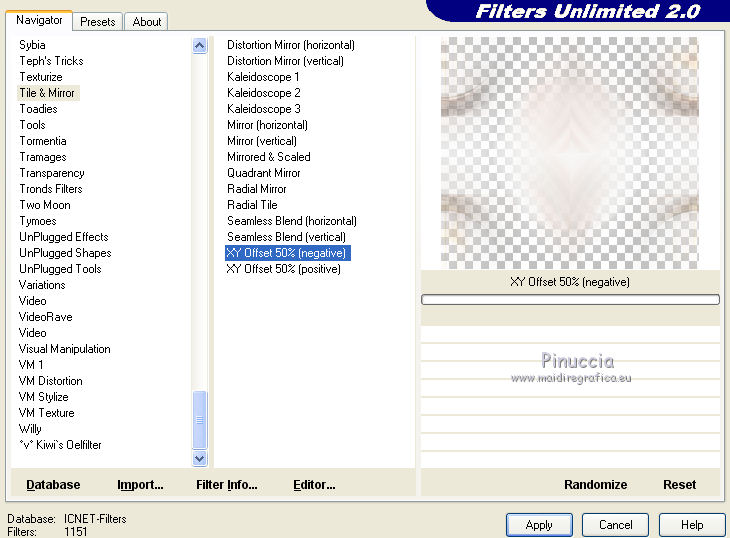 17. Effets>Modules Externes>Filters Unlimited 2.0 – Tile & Mirror – XY Offset 50% (negative).