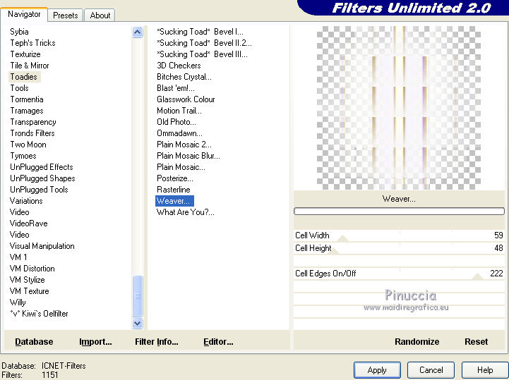 12. Effets>Modules Externes>Filters Unlimited 2.0 - Toadies – Weaver.