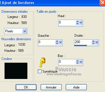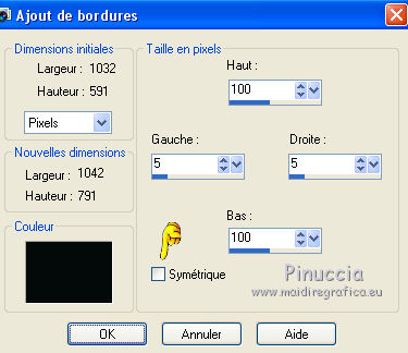 Image>Ajouter des bordures, symétrique décoché, couleur d'avant plan #060c0a.