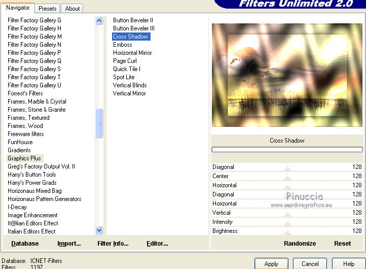 35. Effets>Modules Externes>Filters Unlimited 2.0 - Graphics Plus – Cross Shadow.