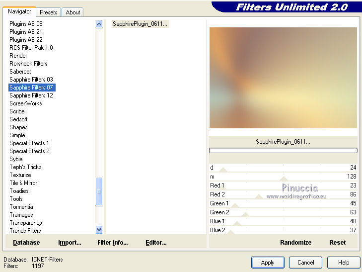 4. Effets>Modules Externes>Filters Unlimited 2.0 - Sapphire Filters 07 – SapphirePlugin_0611.