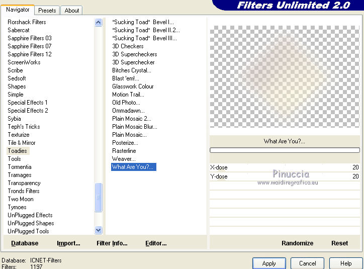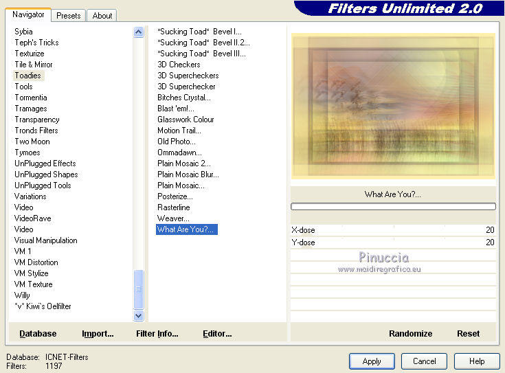 Effets>Modules Externes>Filters Unlimited 2.0 - Toadies – What Are You?