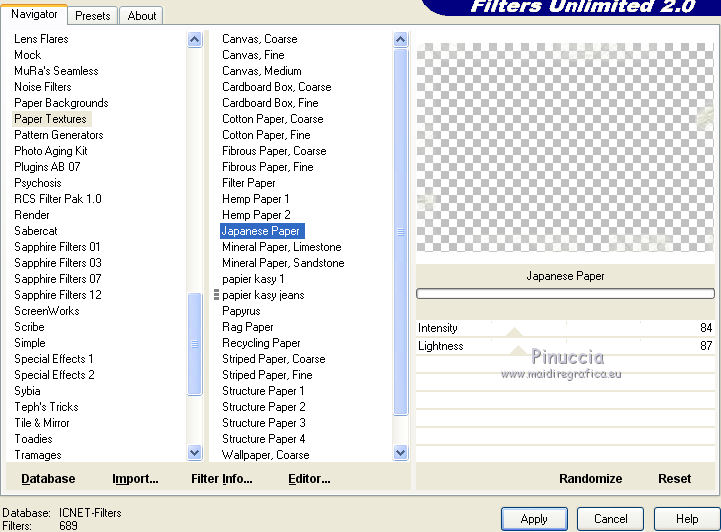 11. Effets>Modules Externes>Filters Unlimited 2.0 – Paper Textures – Japanese Paper, par défaut.