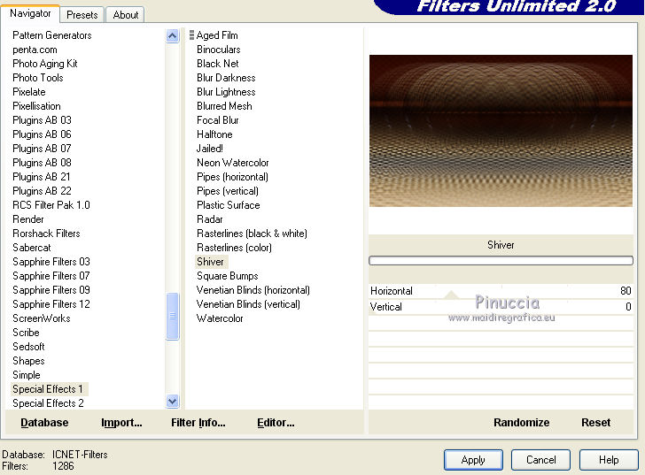7. Effets>Modules Externes>Filters Unlimited 2.0 - Special Effects 1 - Shiver.