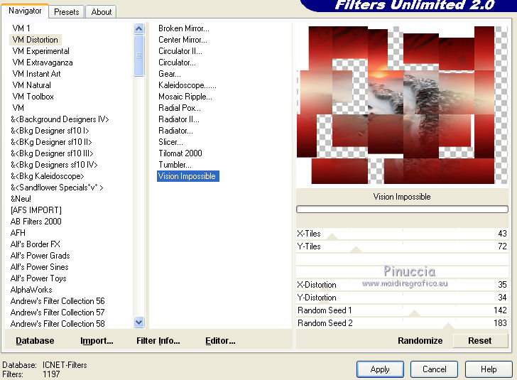 11. Effets>Modules Externes>Filters Unlimited 2.0 - VM Distortion – Vision Impossible.
