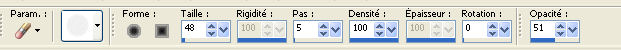 J'ai utilisé le pinceau Duvet doux avec ces règlages.