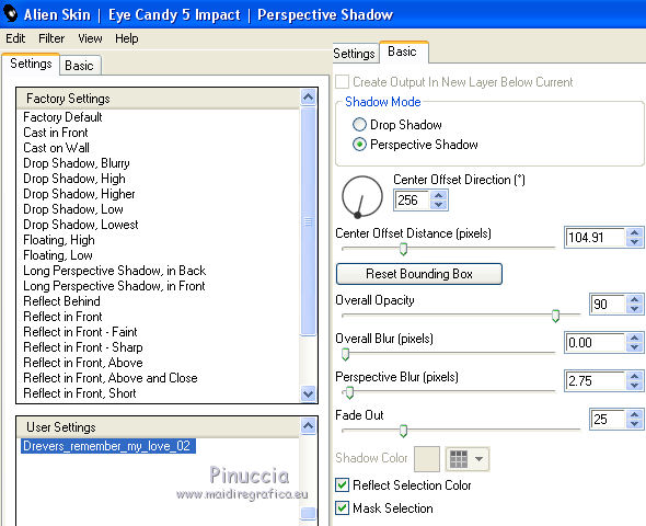 18. Effets>Modules Externes>Alien Skin Eye Candy 5 Impact – Perspective Shadow.