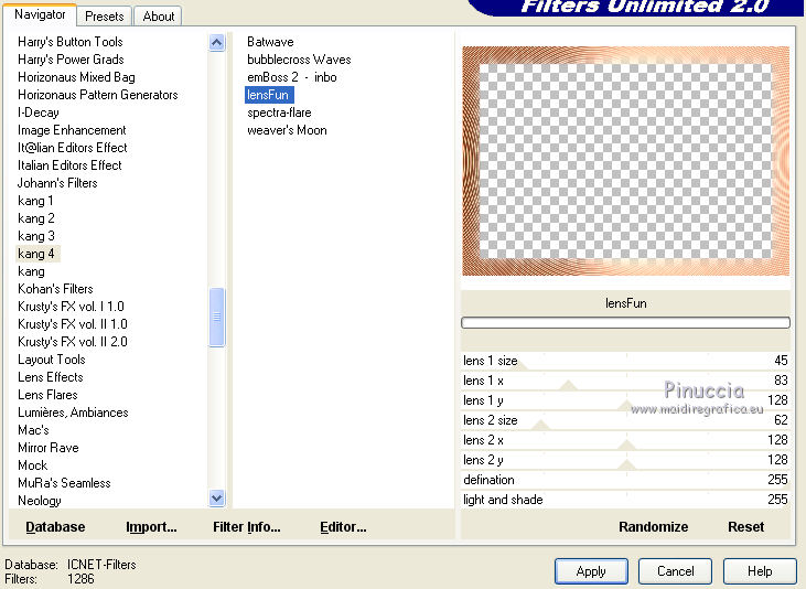 26. Effets>Modules Externes>Filters Unlimited 2.0 - Kang 4 – Lensfun – par défaut.