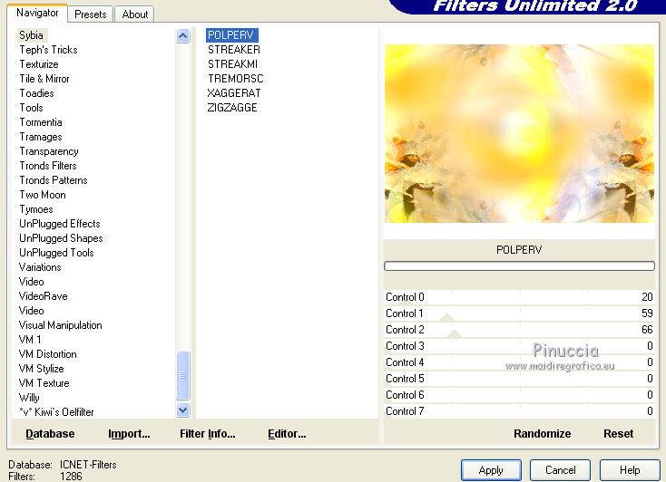 Effets>Modules Externes>Filter Unlimited 2.0 - Sybia – Polperv – par défaut.