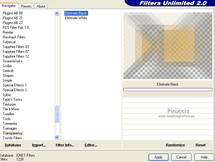 Effets>Modules Externes>Filters Unlimited 2.0 - Transparency – Eliminate Black.
