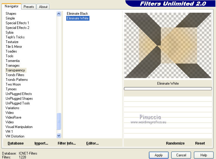 15. Effets>Modules Externes>Filters Unlimited 2.0 - Transparency – Eliminate White.