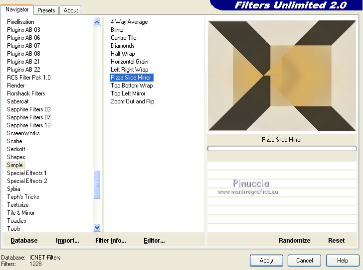 9. Effets>Modules Externes>Filters Unlimited 2.0 - Simple – Pizza Slice Mirror.