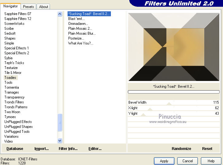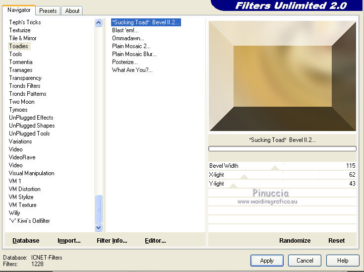 Effets>Modules Externes>Filters Unlimited 2.0 - Toadies – Sucking Toad Bevel II.2, par défaut