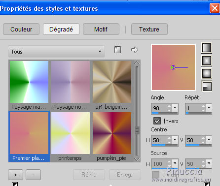 Dans les plus récentes versions de PSP, vous ne trouvez pas le dégradé d'avant plan/arrière plan ou Corel_06_029.