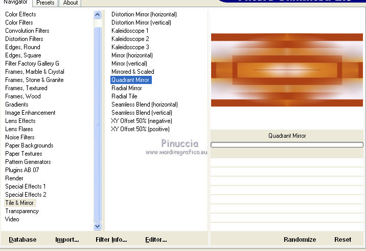 7. Effets>Modules Externes>Filters Unlimited 2.0 - Tile & Mirror - Quadrant Mirror.