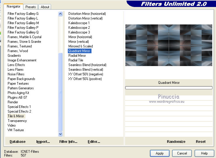 7. Effets>Modules Externes>Filters Unlimited 2.0 - Tile & Mirror - Quadrant Mirror.