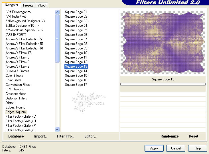 3. Effetti>Plugins>Filters Unlimited 2.0 - Edges,Square - Square Edge 13.
