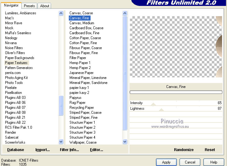 22. Effetti>Plugins>Filters Unlimited 2.0 - Paper Textures - Canvas,Fine.