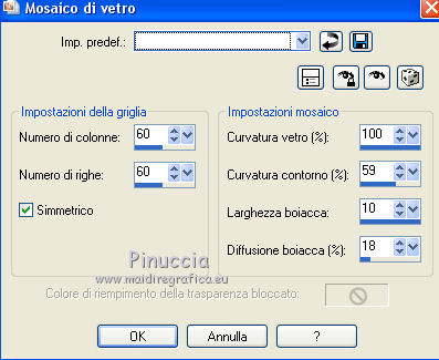 Effetti>Effetti di trama>Mosaico di vetro, con i settaggi precedenti.