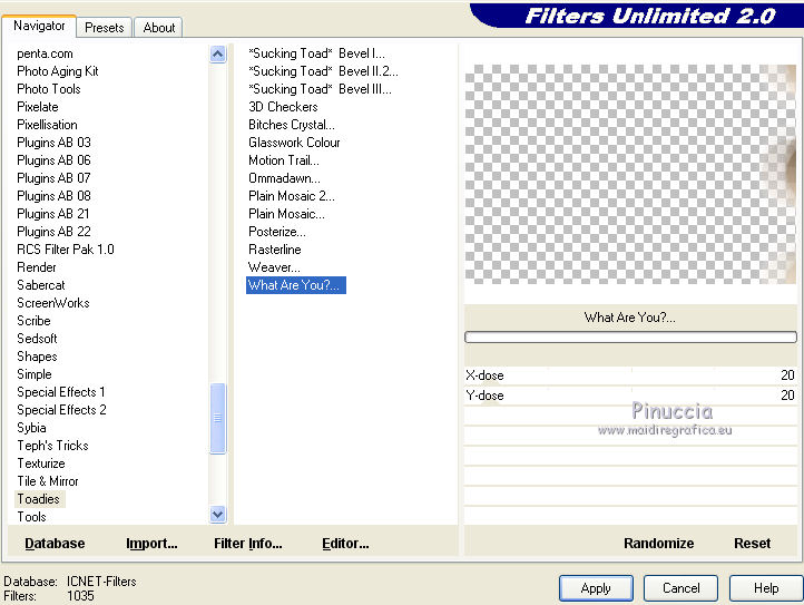 Effetti>Plugins>Filters Unlimited 2.0 - Toadies - What are you.