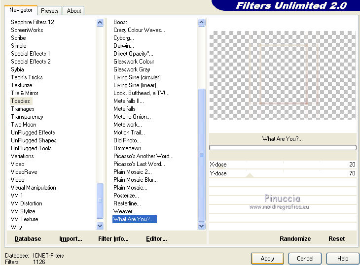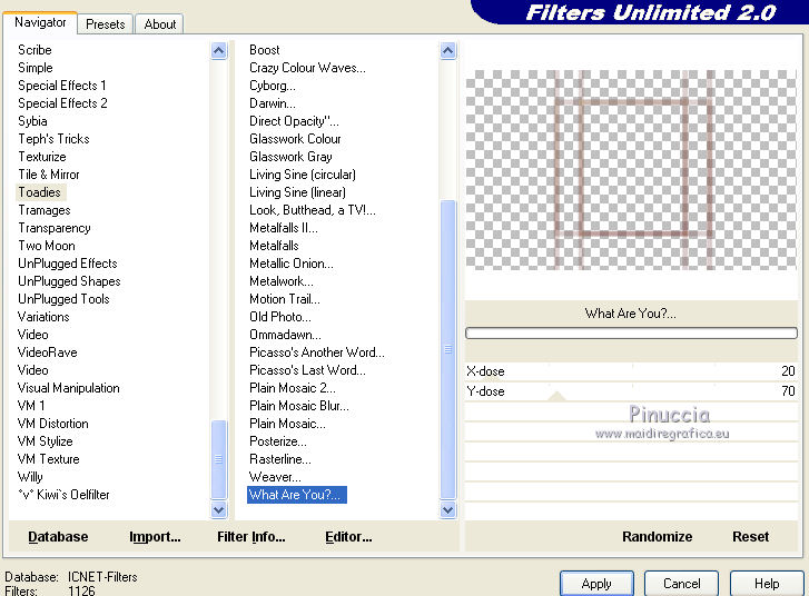 9. Effetti>Plugins>Filters Unlimited 2.0 - Toadies - What are you.