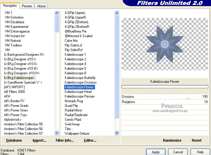 23. Effetti>Plugins>Filters Unlimited 2.0 - &<Bkg Kaleidoscope> - Kaleidoscope Flower.