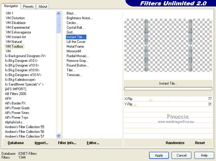 Effetti>Plugins>Filters Unlimited 2.0 - VM Toolbox - Instant Tile, con i settaggi standard.