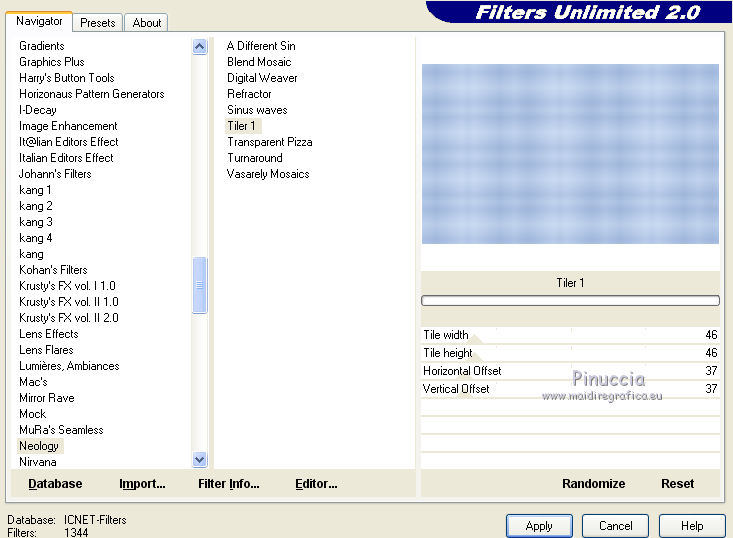 4. Effetti>Plugins>Filters Unlimited 2.0 - Neology - Tiler 1.